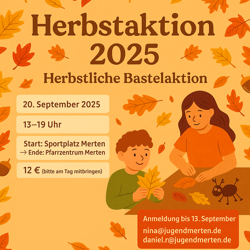 Am 20.09.2025 laden wir alle Kinder zwischen 6 und 15 Jahren ein, mit uns Naturmaterialien zu sammeln und daraus tolle Bastelideen umzusetzen. 🎨✨